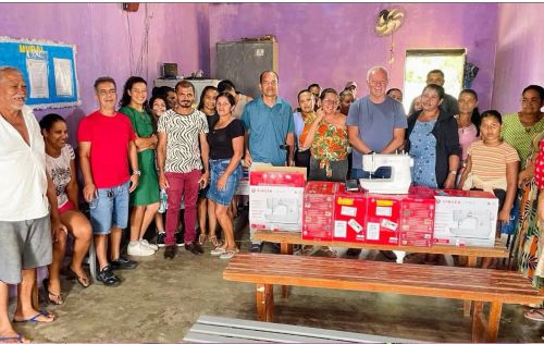 Estive na localidade ao lado da presidente da Associação local, Bernardina Almeida, da vice-presidente Mônica Homem e do presidente da Amelpruf, Joseval Cardoso, para realizar a entrega de um kit com seis máquinas de costura.